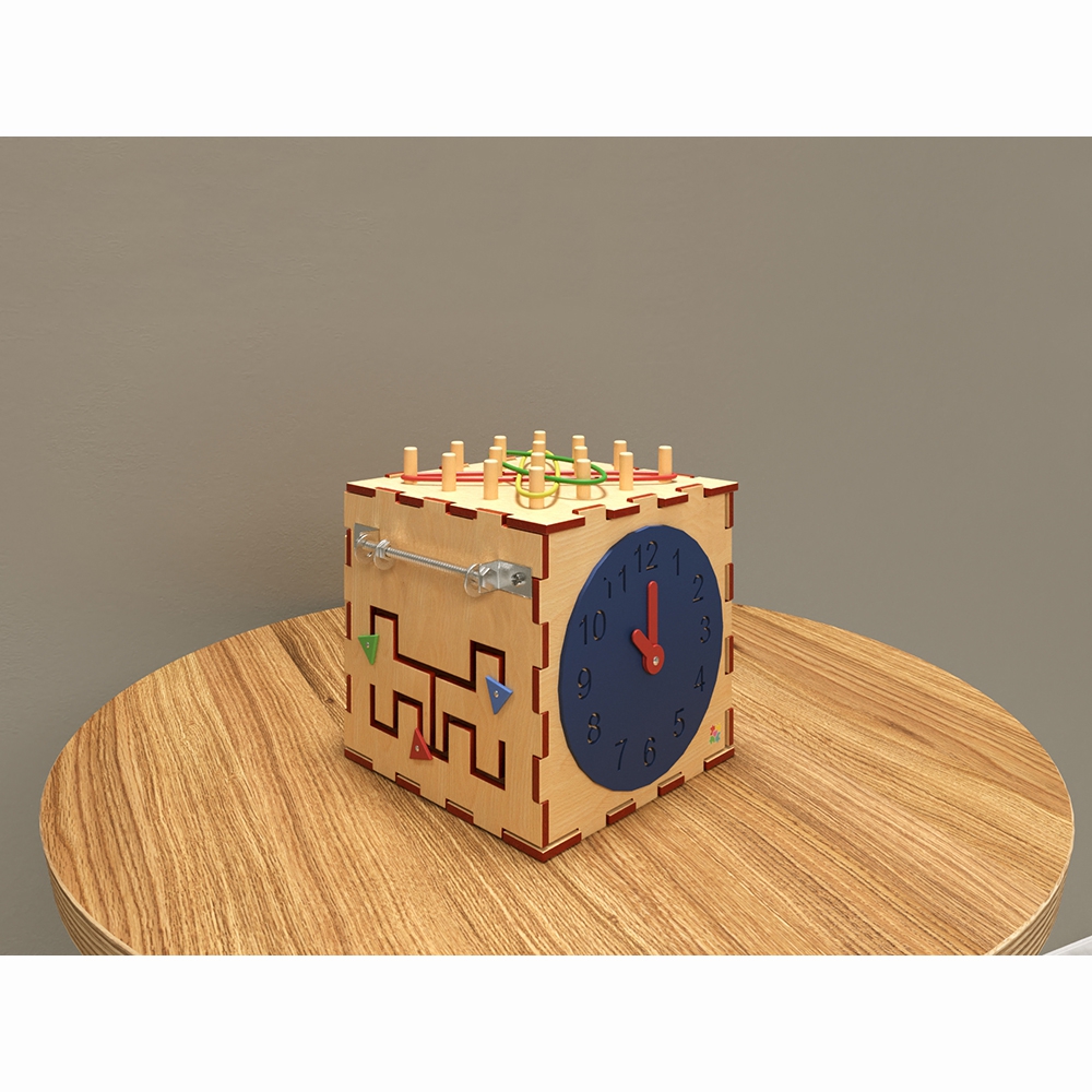 Бизикуб – объёмный аналог бизиборда, игровой модуль с дидактическим уклоном для детей от 1 года. Несмотря на объёмную форму, бизикуб компактен, не занимает много места и замечательно экономит игровое пространство, не уменьшая при этом его ценности. Имеет множество деталей, которые прочно прикреплены к поверхности, что позволяет играть с бизикубом даже самым маленьким малышам.